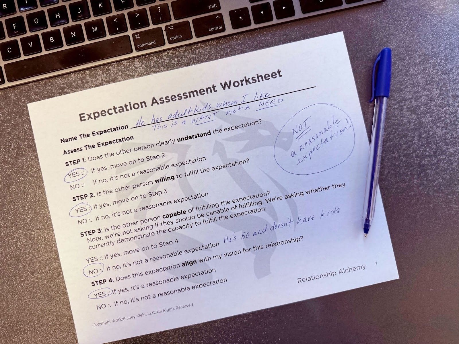 In Relationship Alchemy, we use a clear framework to evaluate whether an expectation is reasonable.